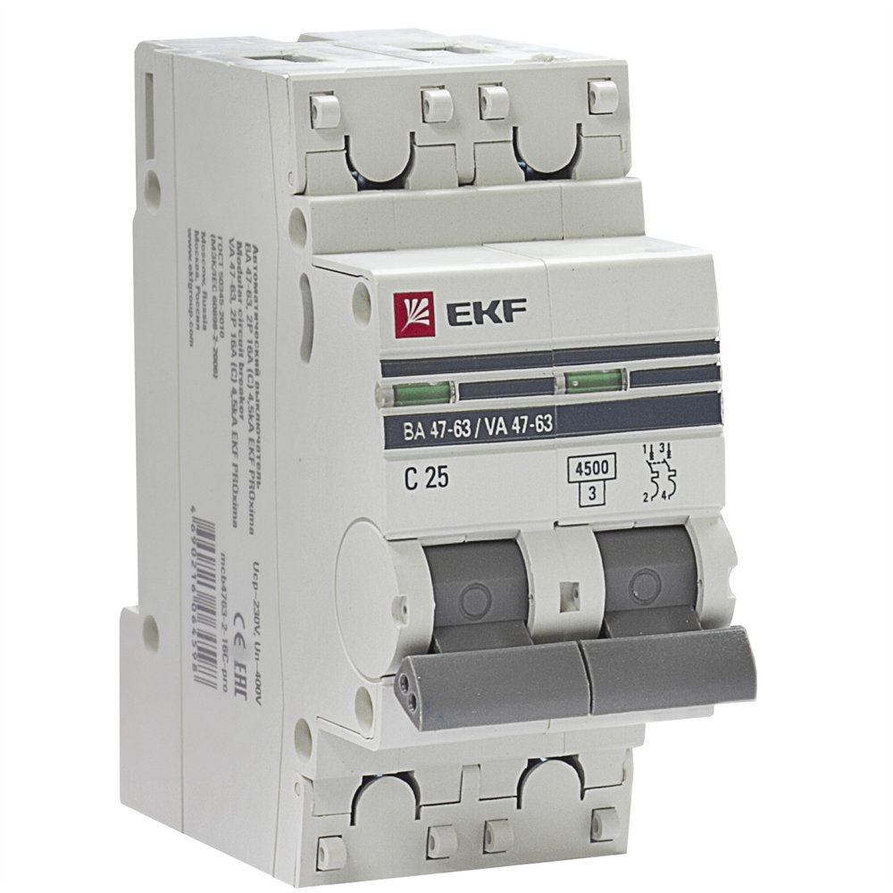 022 268 000Автоматический выключатель 2P 25А (C) 4.5kA ВА 47-63 предназначены для оперативного управления участками электрических цепей, а так же защиты от токов перегрузки и короткого замыкания в административных, промышленных и жилых зданиях. Выключатели производятся в одно-, двух-, трех- и четырехполюсном исполнениях.