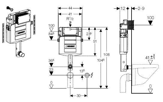 Бачок для унитаза Duofix UP320 представляет собой качественное изделие. Данная модель предназначена для скрытого монтажа. Бачок крепится в двух точках, которые находятся в верхней части элемента. Монтажная высота изделия составляет 51 см, ширина – 44 см.