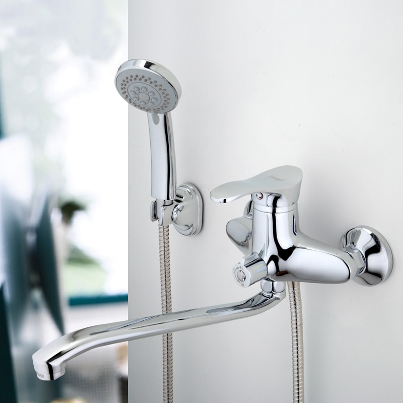 022 268 000Смеситель для ванны и душа F2268 хром Frap - латунный имеет гусак. Из-за этого его нельзя использовать одновременно и для умывальника. В то же время он отлично подойдет для душевых кабин, увеличив их функциональность. Изделие даст возможность набрать ведро воды, а при необходимости поворотный излив можно убрать в сторону.