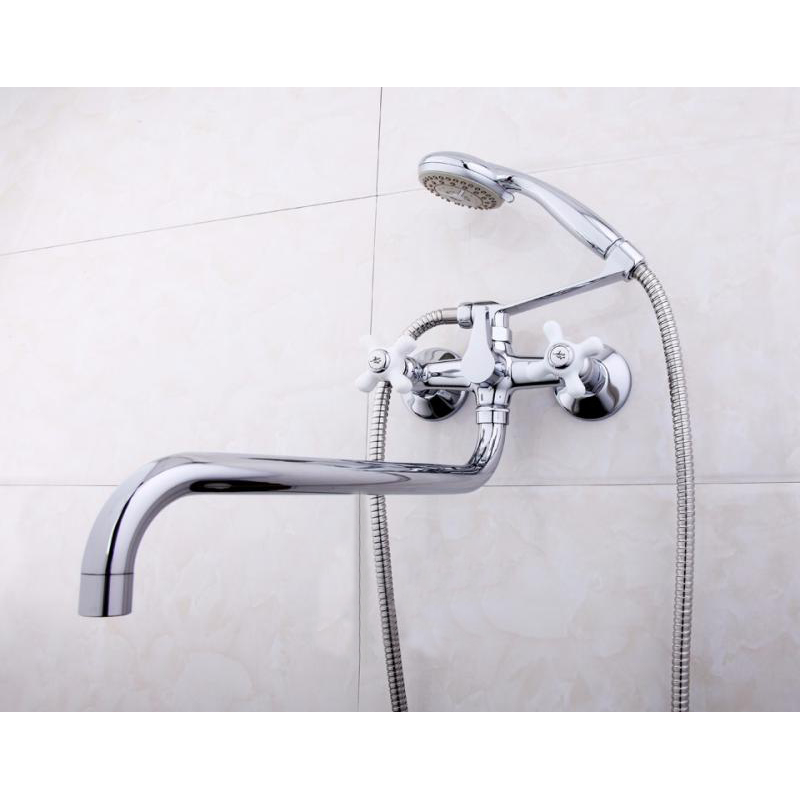022 268 000Смеситель для ванны и душа F2618 хром Frap - латунный имеет гусак. Из-за этого его нельзя использовать одновременно и для умывальника. В то же время он отлично подойдет для душевых кабин, увеличив их функциональность. Изделие даст возможность набрать ведро воды, а при необходимости поворотный излив можно убрать в сторону.