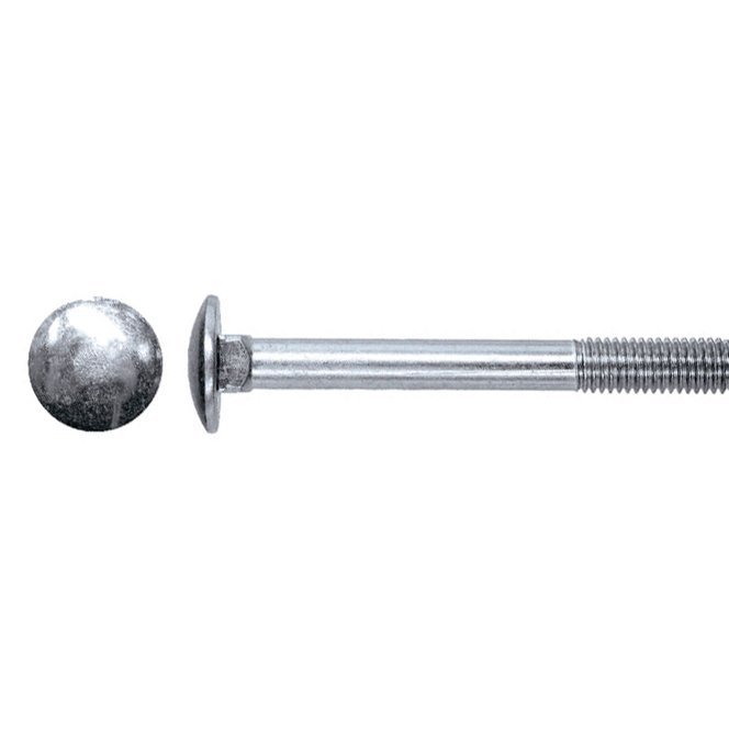 Оцинкованный мебельный болт DIN 603 имеет вид стального стержня с неполной резьбой. Головка у мебельного болта полукруглая, без шлицов и насечек, монтаж осуществляется только со стороны резьбы. При закручивании четырехгранный подголовник препятствует болту прокручиваться, таким образом это позволяет затянуть гайку.