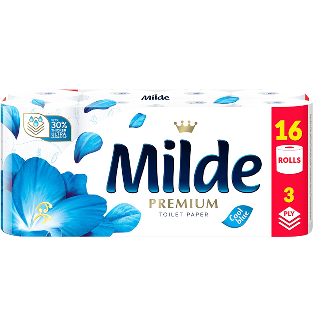 Туалетная бумага Milde Cool Blue трехслойная 16 рулонов