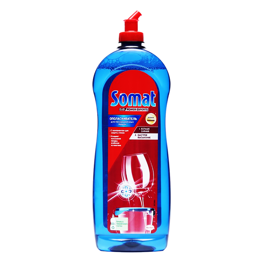 022 268 000Ополаскиватель для посудомоечных машин Somat 0.75л - создает защитную пленку на поверхности посуды, предотвращая образование водяных пятен на стаканах и посуде, особенно стеклянной посуде, а также придает блеск.