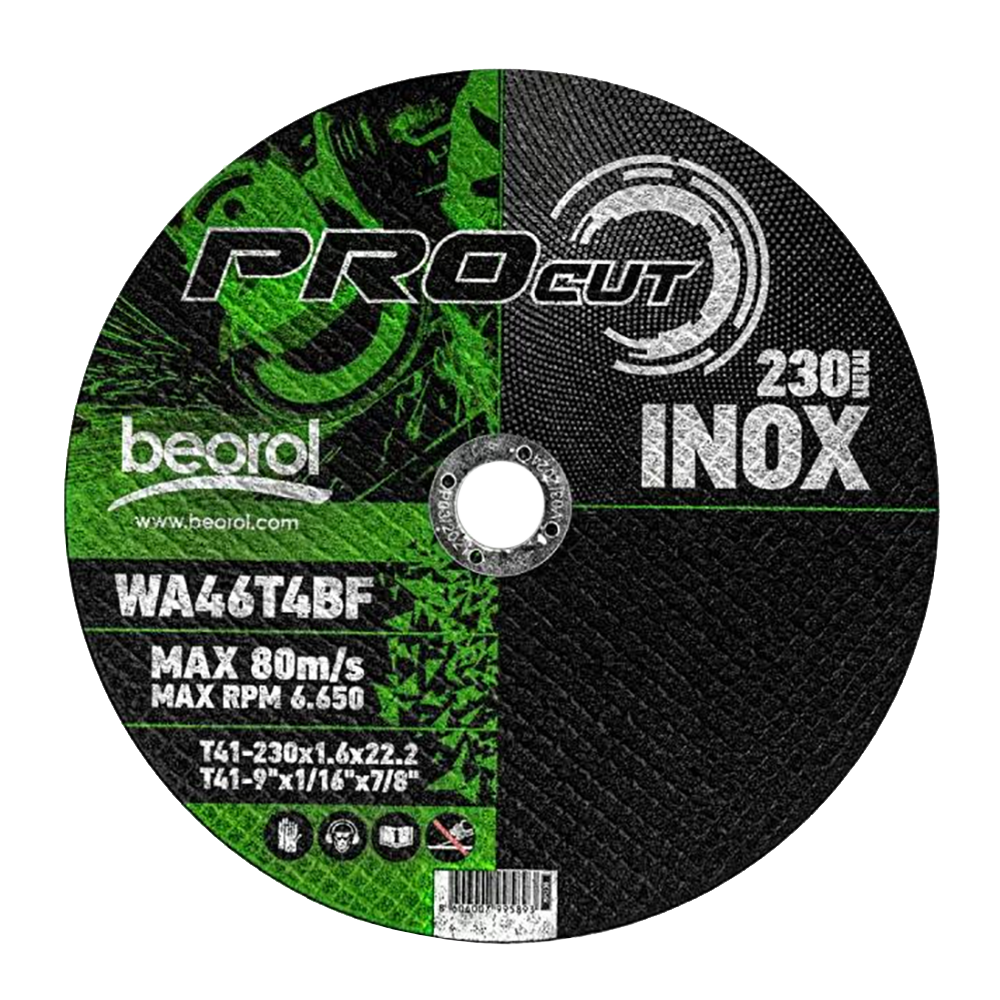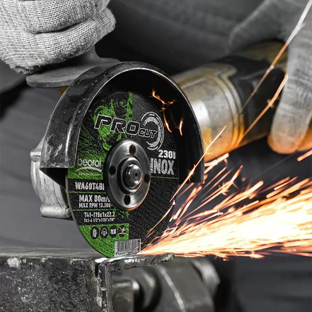 Диск отрезной абразивный используется для резки деталей и заготовок из нержавеющей стали (INOX-а). Правильный выбор абразивных частиц и связующего материала позволяет быстроту и легкость в работе. Для безопасности мастера диск армирован. Металлическая ступица обеспечивает прочную и безопасную связь между диском и угловой шлифовальной машиной.