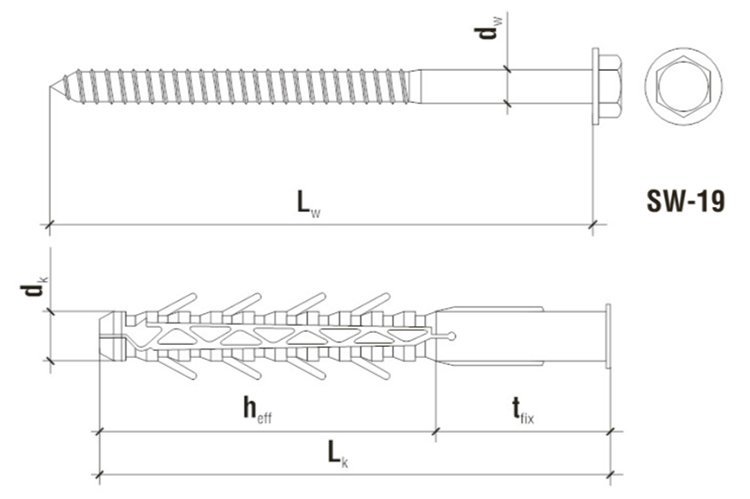 Дюбель с шурупом с шестигранной головкой KPO 16x140/12x150мм