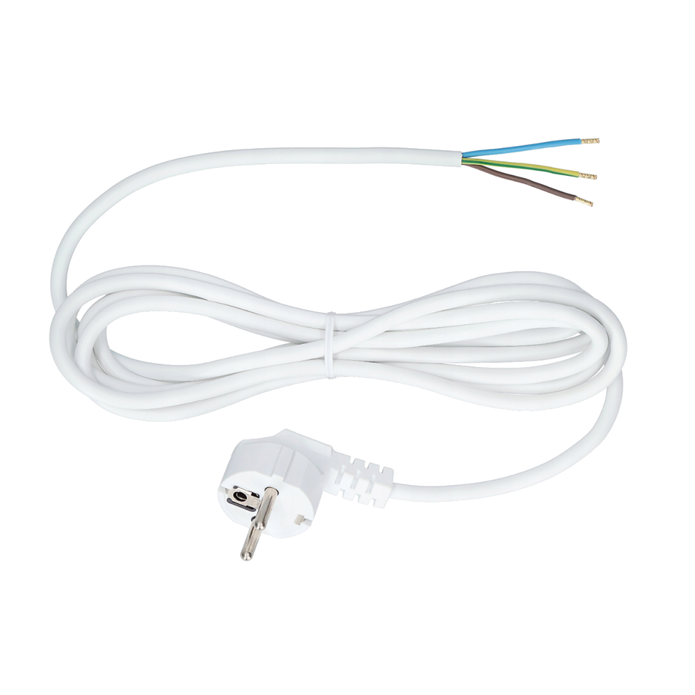 Вилка угловая с заземлением кабель 3м белый Jonex