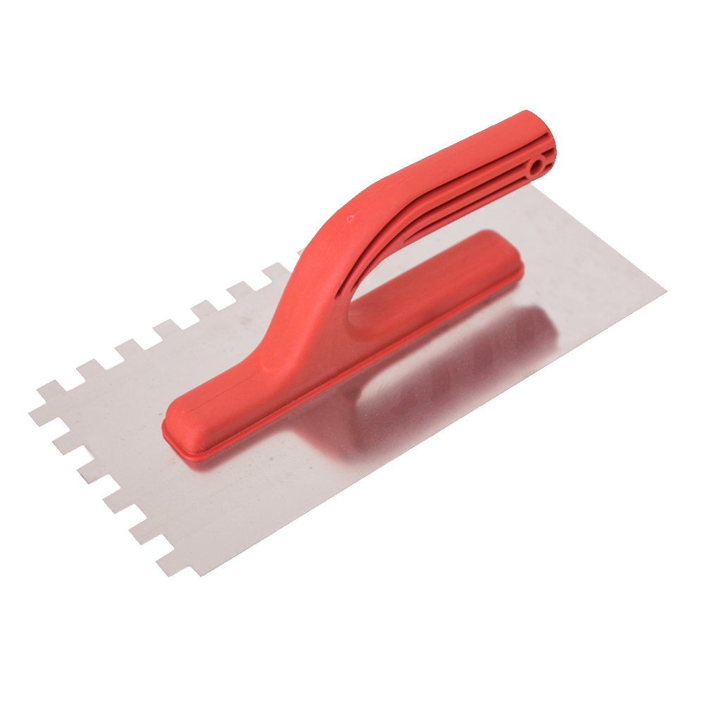 Гладилка нержавеющая с зубцами изготовлена из нержавеющей стали. Оснащена эргономичной пластиковой ручкой. Предназначена для нанесения и разравнивания штукатурных смесей и клеевых растворов.
