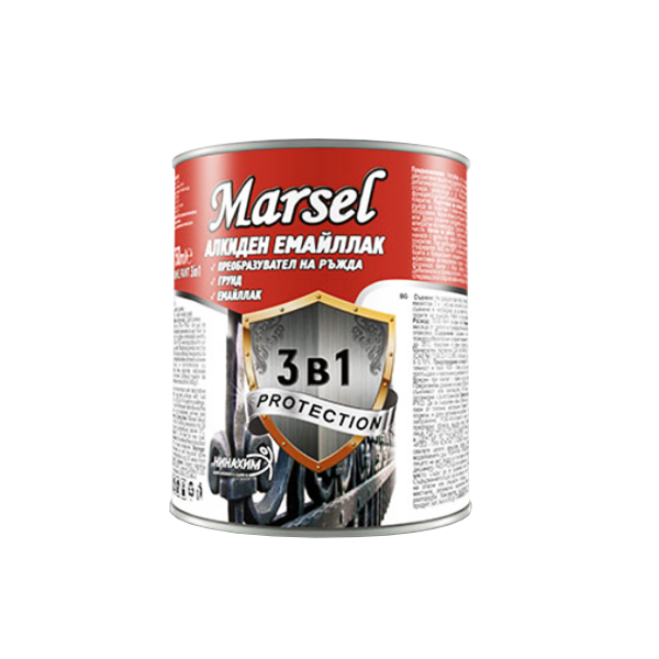 Эмаль Marsel 3в1 – алкидная эмаль которая выполняет функцию преобразователя ржавчины, грунта и декоративного покрытия. Применяется для защитно-декоративной обработки поржавевших стальных поверхностей (немного ржавыe или очищены ржавчины, но не до металлическим блеском) перилл, оград, металлических лестниц, садовой мебели трубчатой конструкции, водосточных труб, гаражных ворот, крыш, металлических конструкций и других поверхностей.