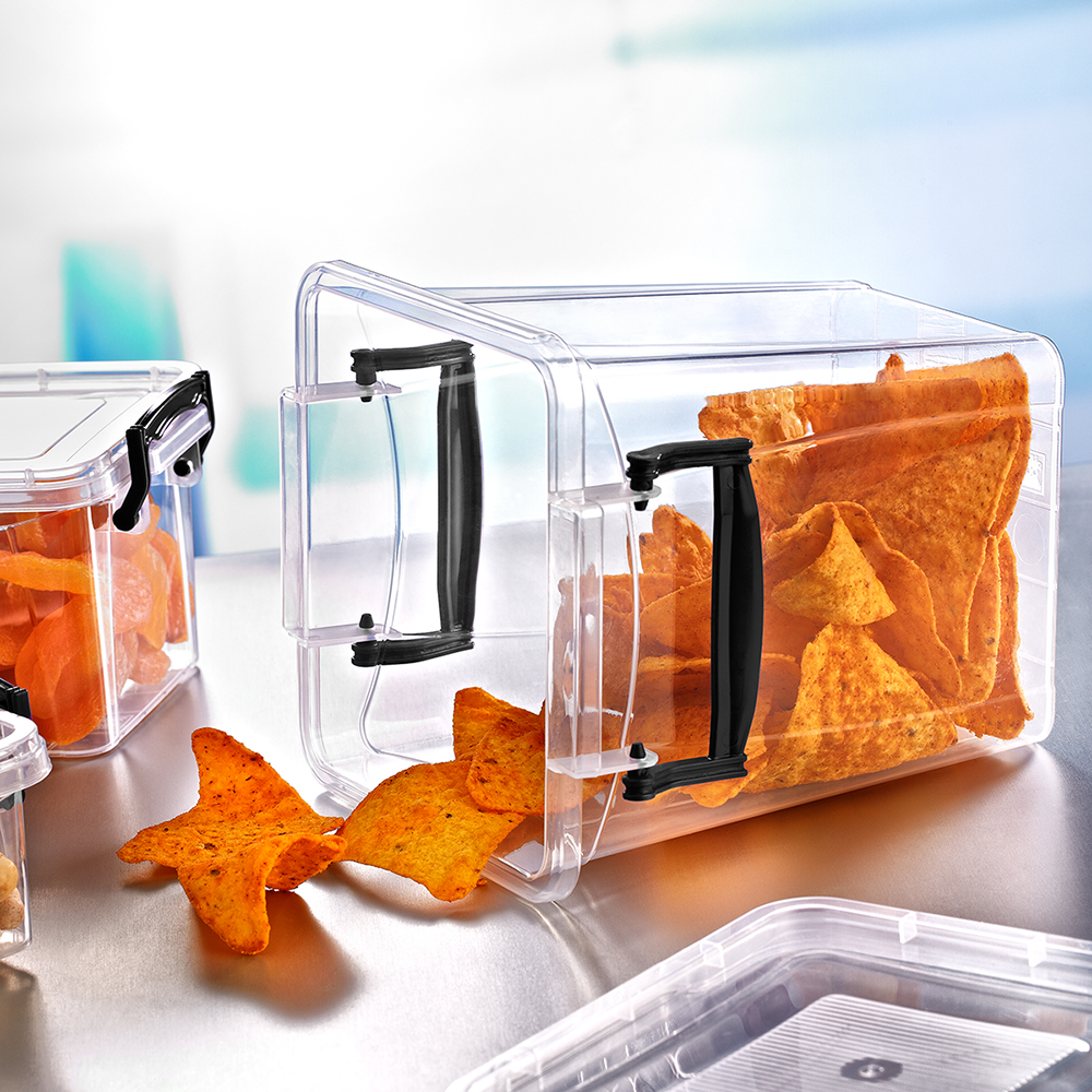 Контейнер для хранения 1.8л - прозрачные ящики для хранения любых предметов. Ящики разных размеров ставятся друг на друга в специальные пазы на крышке. Экономят место на полке и помогают организовывать пространство.