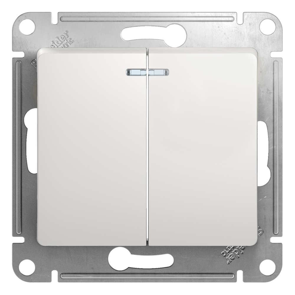 Выключатель с подсветкой 2 клавишный белый Glossa