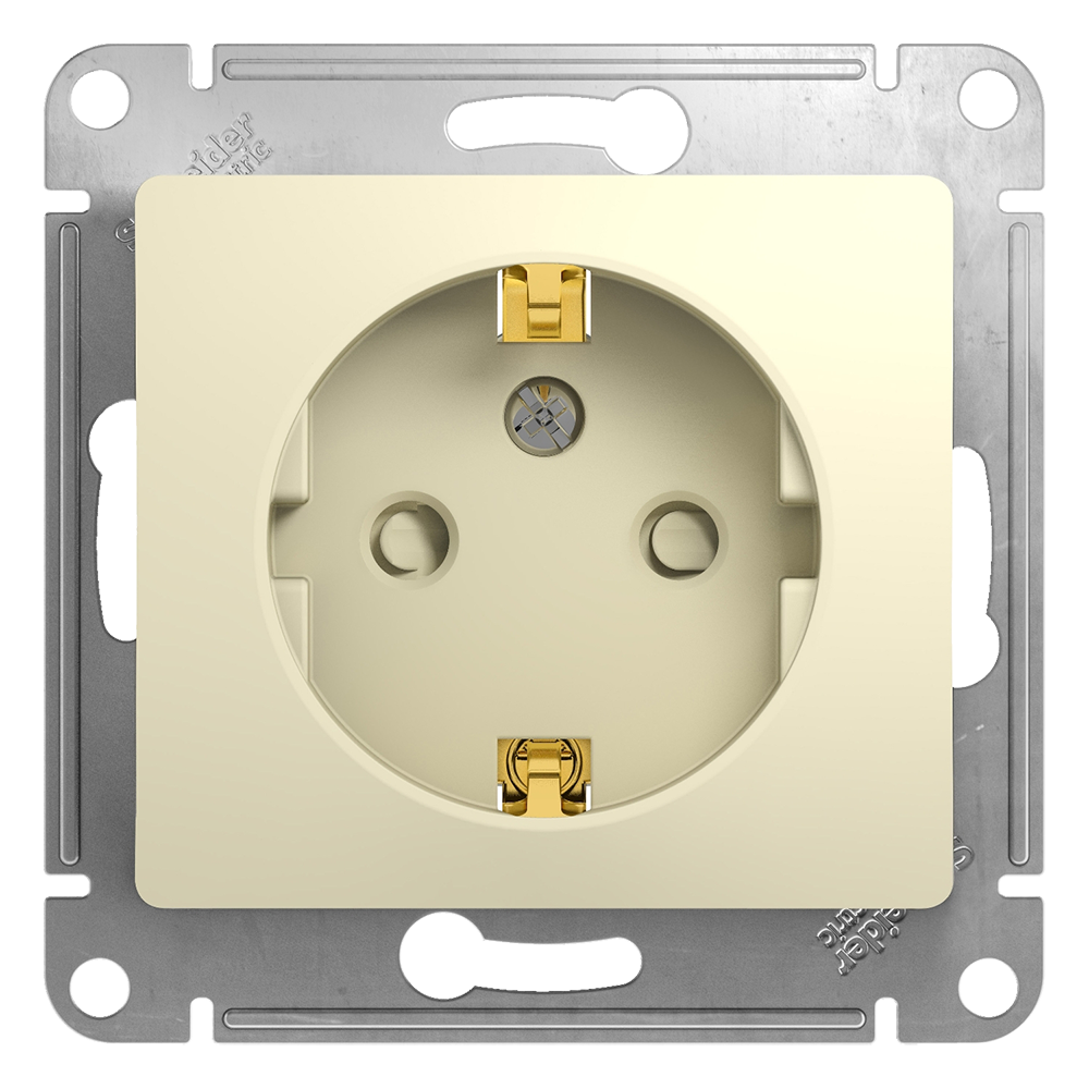 Розетка с заземлением и шторками бежевый Glossa