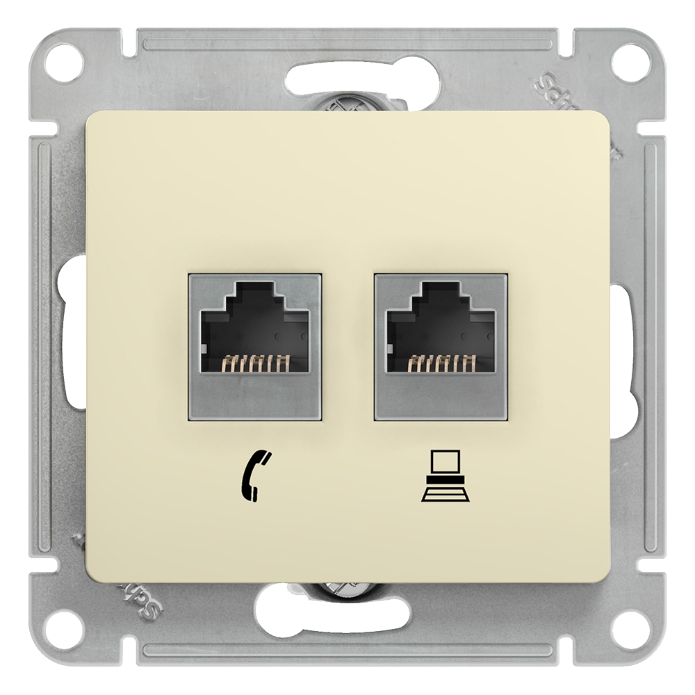 Розетка RJ45/RJ11 бежевый Glossa