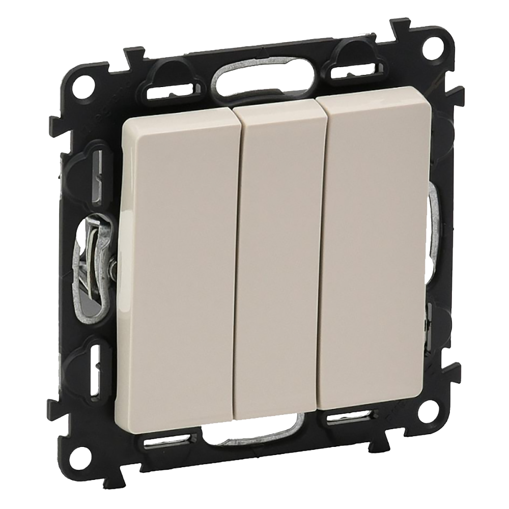 Выключатель 3 клавишный 752503 слоновая кость Valena Life - трехлавишный, простой выключатель используется для включения/выключения освещения, мелких вентиляторов и пр. Поверхность выполнена из термопласта - ударопрочного, не ломающегося материала, стойкого к ультрафиолетовому излучению. Это рациональная форма квадрата, а также тонкость и четкость линий. Этот актуальный и практичный дизайн подходит как для простых, так и для изысканных интерьеров. Быстрый и удобный монтаж. Установочная рамка приобретается отдельно.
