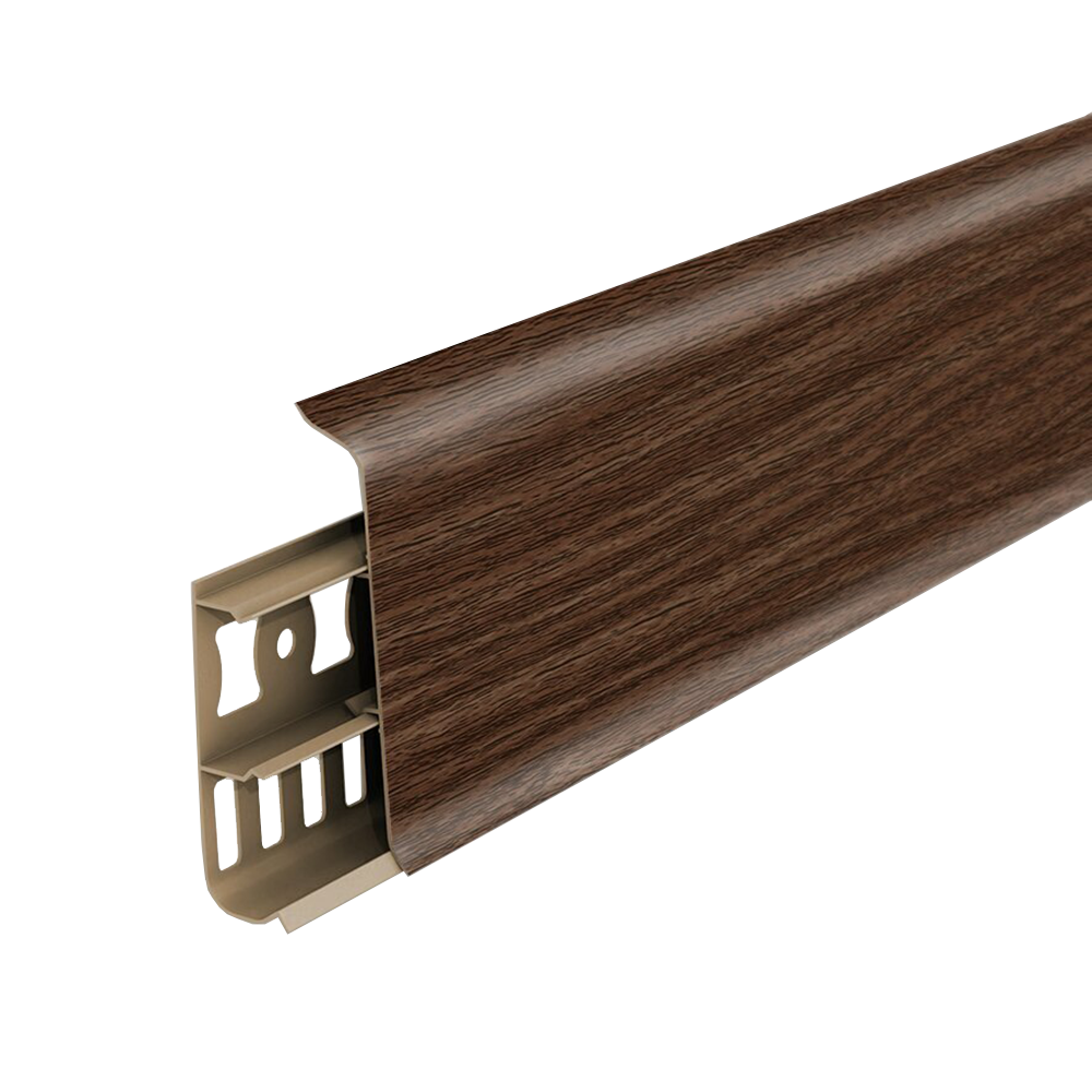 022 268 000Плинтус напольный Деконика 291 Орех 85х21х2200мм - дизайнерская серия напольного плинтуса со скошенными прямыми углами высотою 8.5 см., подходит абсолютно для всех видов помещений, большой ассортимент цветов позволяет определенно точно подобрать материал под дизайн интерьера и напольные покрытия.