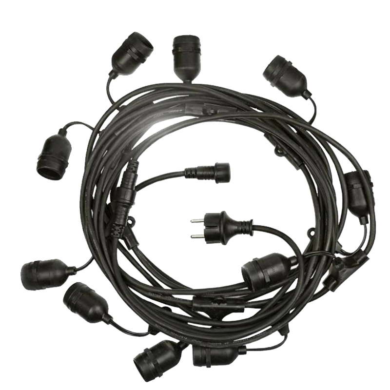 Кабель с цоколями E27 10 ламп 10м черный