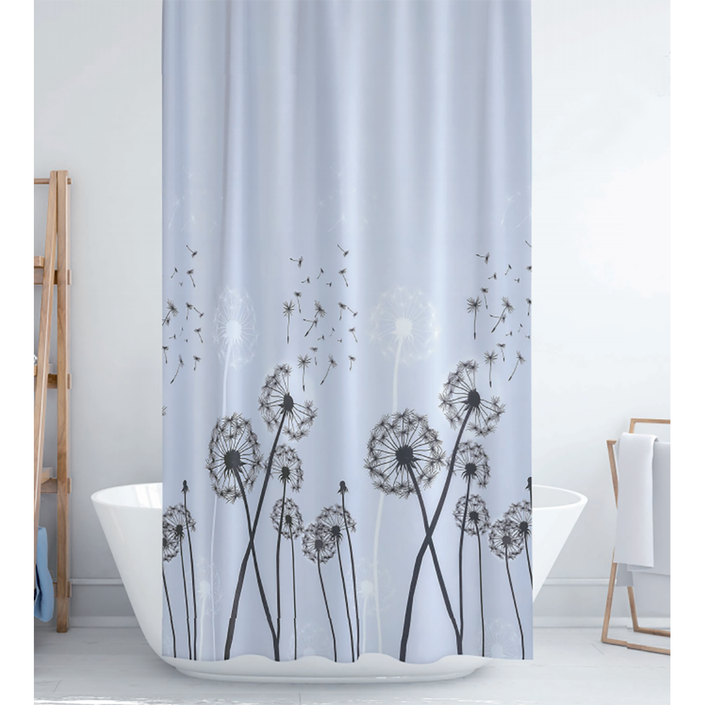 022 268 000Штора для ванны ткань с кольцами 180х200см одуванчик - шторы для ванной комнаты из водонепроницаемой ткани предназначены как для ванны, так и для душевой кабины. Они изготовлены из высококачественного непромокаемого материала, очень приятного на ощупь, благодаря чему с удовольствием их используют. К тому же отличительной чертой наших штор являются богатый дизайн и расцветка.