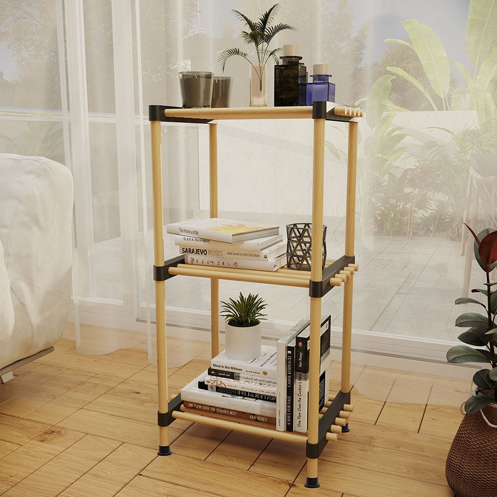 Полка деревянная многоцелевая модульная 3-уровневая SEO8167 74.5х40х28см