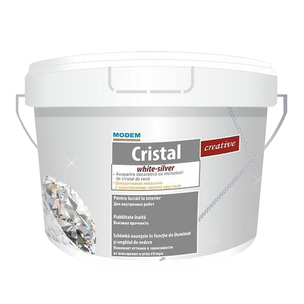 022 268 000Покрытие декоративное Creative Cristal серебристый 5кг - современное перламутровое покрытие, применяемое для внутренних работ. Сочетание искрящей базы и круглых стеклянных кристаллов придают этому материалу индивидуальность и неповторимую красоту. Также в состав CRISTAL входят сверкающие перламутровые частицы, которые создают эффект мерцания. Данный продукт является высокопрочным покрытием, который очень прост в нанесении.
