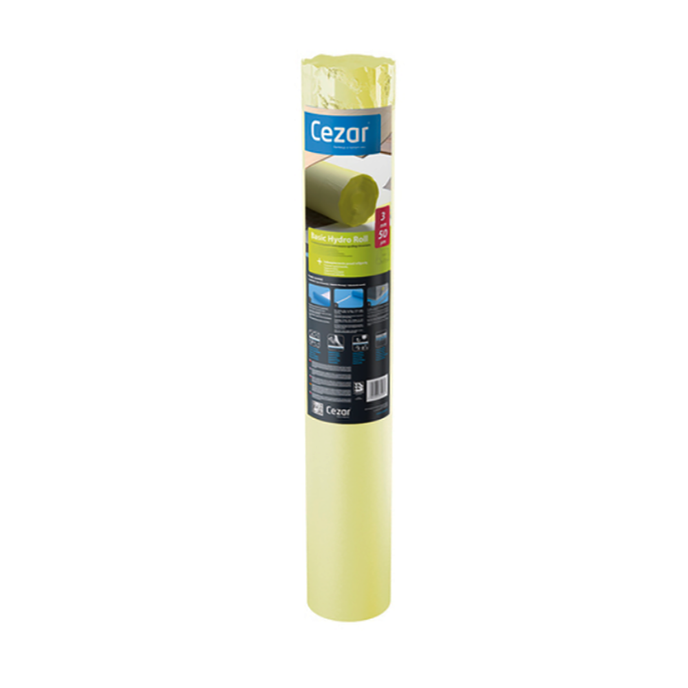 022 268 000Подложка с пароизоляционной пленкой 55микр 3мм 2в1 Basic Hydro Cezar 1x15м - Basic Hydro Roll – это двухслойная подложка, объединяющая преимущества вспененной подложки на основе полиэтилена и пароизоляционной пленки толщиной 50 μm. Является первым слоем, обеспечивающим герметичную защиту пола от влажности и появления плесени.