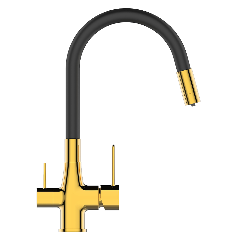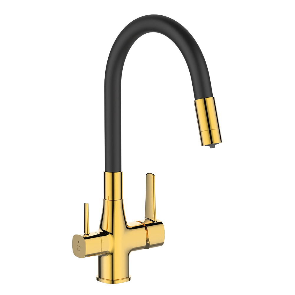 Смеситель для кухонной мойки с гибким изливом Glamour Invena черный/золотистый