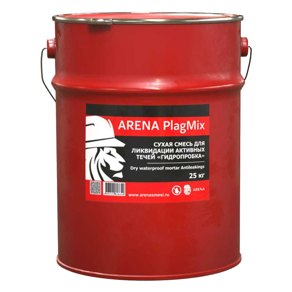 022 268 000Гидропломба для ликвидации активных течей Arena PlugMix PW 25кг - благодаря способности быстро останавливать напорные течи в швах и трещинах конструкций из бетона и железобетона, специалисты назвали сухую гидроизоляционную смесь поверхностного действия ARENA PlugMix PW более кратким и емким термином «гидропломба». В состав данной смеси входят специальные цементы, отборные фракции кварцевого песка, комплекс полимерных добавок, способных до предела ускорить схватывание и твердение нанесенного состава, а также компоненты, эффективно защищающие нанесенную гидропломбу от размывания потоком воды.