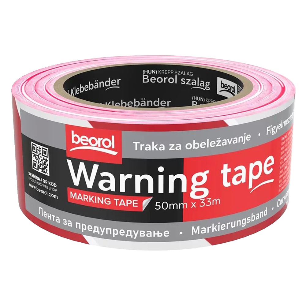 022 268 000Лента для разметки красно-белый 50мм 33м Beorol SZOCB - для разметки напольных покрытий. Tип клея: акриловый клей, устойчивый к разрыву, не оставляет следов прилипания. Материал: ПВХ.
