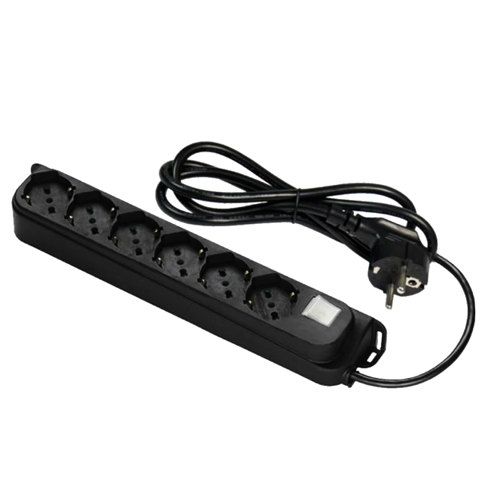 Удлинитель 3м на 6 розеток с заземлением/выключателем черный Fanton