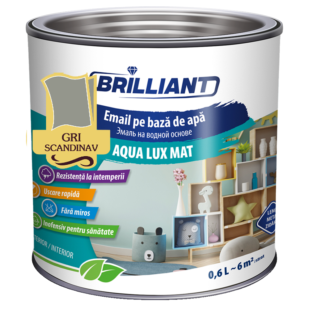 022 268 000Эмаль акриловая матовая Aqua Lux Mat серый скандинавский 0.6л - представляет собой эмаль на водной основе и применяется для защиты металлических, деревянных и нейтральных каменных поверхностей, придавая им приятный внешний вид. Применяется для покрытия новых поверхно - стей, а также для ремонта ранее окрашенных поверхностей, а цветные тона можно использовать и для покрытия отопи- тельных приборов (радиаторов). Поставляется в бархатистой матовой версии.
