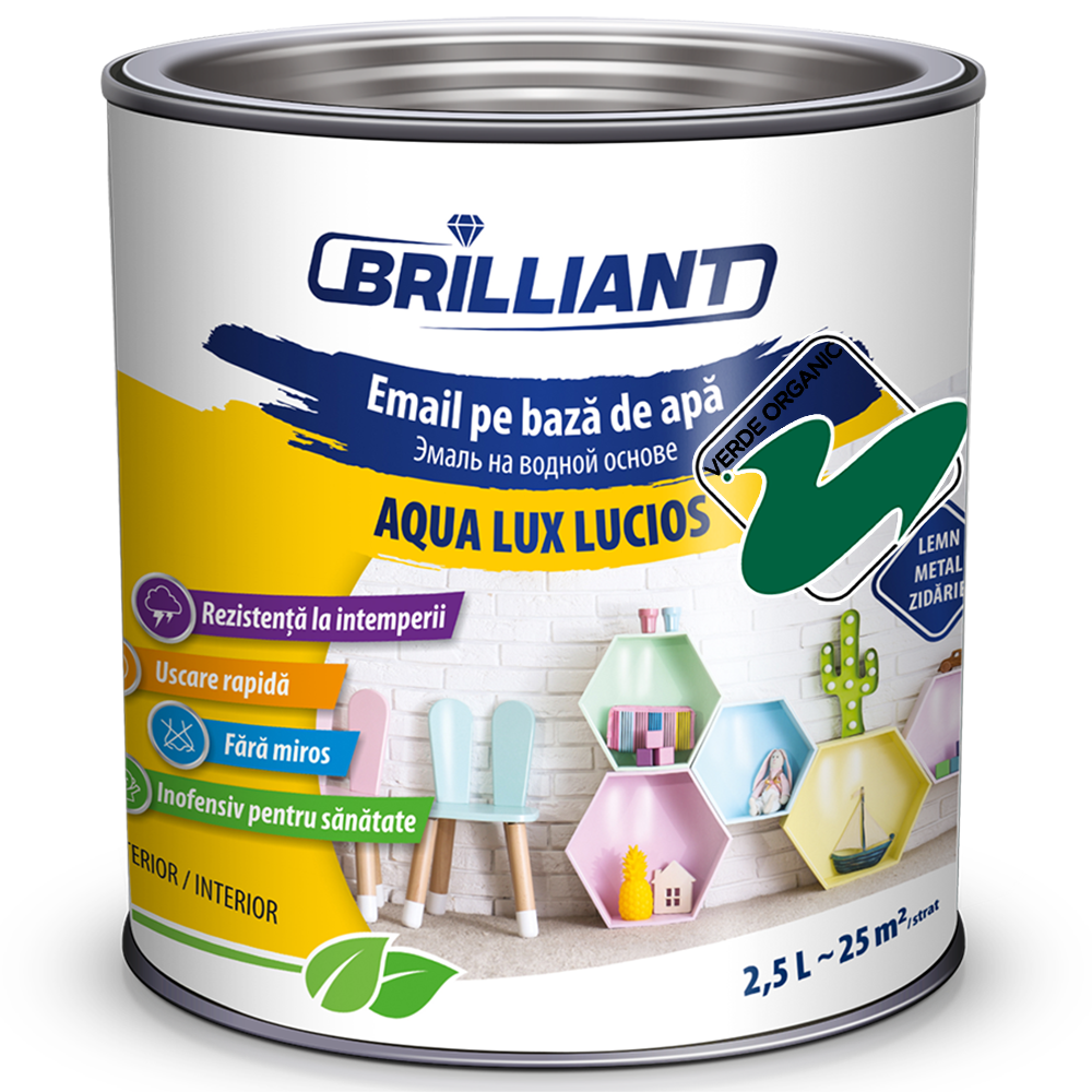 022 268 000Эмаль акриловая глянцевая Aqua Lux Lucios зеленый органик 2.5л - представляет собой акриловую атмосферостойкую эмаль, которую можно использовать для за- щиты наружных и внутренних поверхностей из: дерева (окна, двери, деревянные жалюзи, садовая мебель, другие дере- вянные элементы), металла (трубы, радиаторы) и каменной кладки. Применяется для покрытия новых поверхностей, а также для ремонта ранее окрашенных поверхностей, а цветные тона можно использовать и для покрытия отопительных приборов (радиаторов). Эмаль имеет элегантный глянцевый вид.