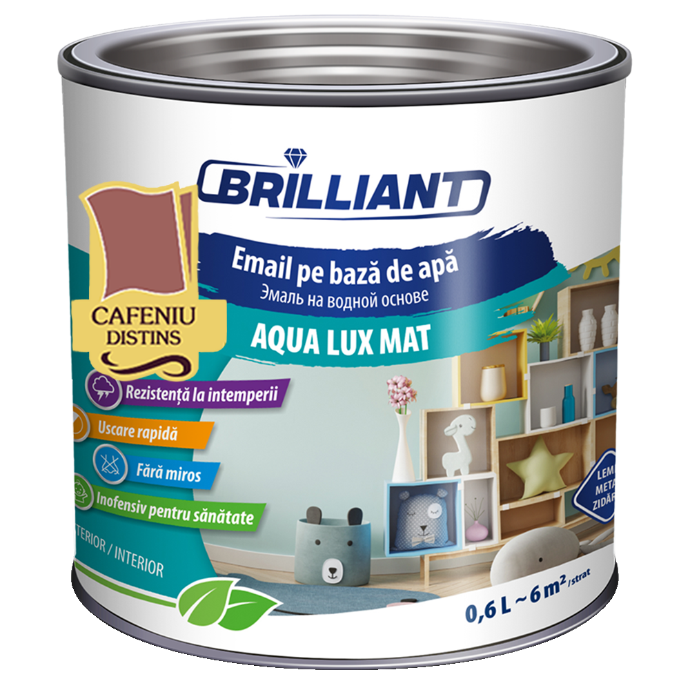 022 268 000Эмаль акриловая матовая Aqua Lux Mat благодарно коричневый 0.6л - представляет собой эмаль на водной основе и применяется для защиты металлических, деревянных и нейтральных каменных поверхностей, придавая им приятный внешний вид. Применяется для покрытия новых поверхно - стей, а также для ремонта ранее окрашенных поверхностей, а цветные тона можно использовать и для покрытия отопи- тельных приборов (радиаторов). Поставляется в бархатистой матовой версии.