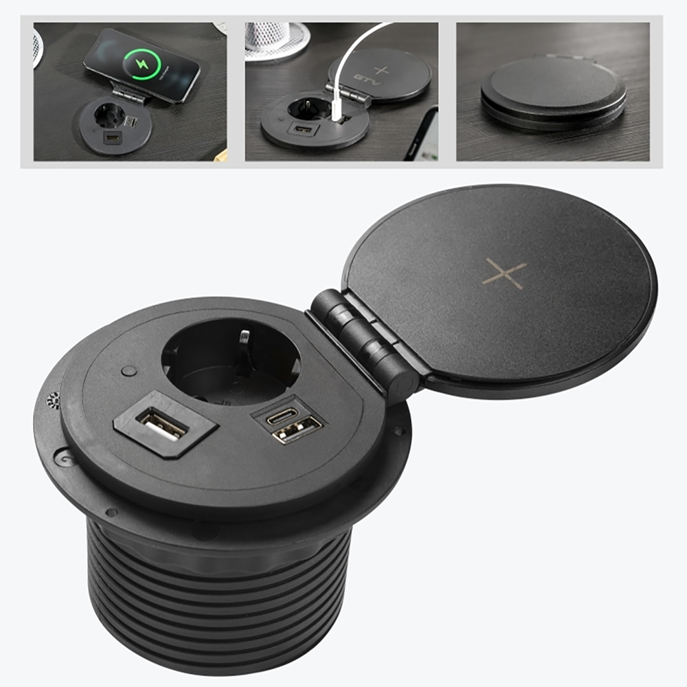 Удлинитель 1 розетка USB RG45 HDMI charge черный GTV
