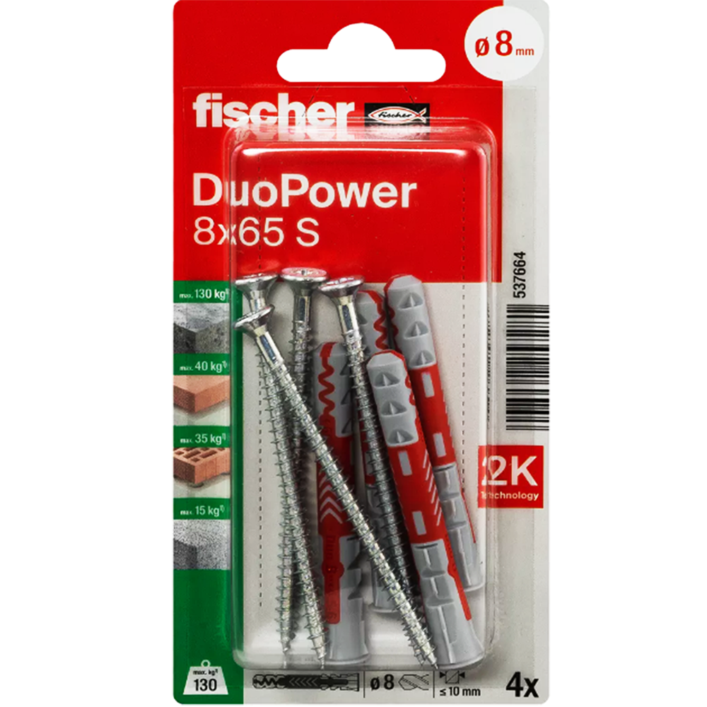 Дюбель Duopower 8х65мм S K NV Nylon 4шт.