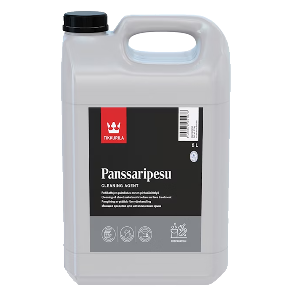 022 268 000Чистящее средство для металлических крыш Tikkurila Panssaripesu 5л - это эмульгирующее моющее средство, предназначенное для подготовки поверхностей перед покраской. Оно эффективно очищает и обезжиривает различные поверхности, обеспечивая их идеальное состояние для нанесения краски. Объекты применения: Продукт используется для очистки и обезжиривания оцинкованных поверхностей перед нанесением краски. Также он подходит для очистки ранее окрашенных поверхностей, благодаря содержанию аммиака, что способствует более эффективной очистке. Область применения: Panssaripesu подходит для подготовки оцинкованных поверхностей и очистки ранее окрашенных поверхностей перед покраской, что обеспечивает лучшее сцепление краски.