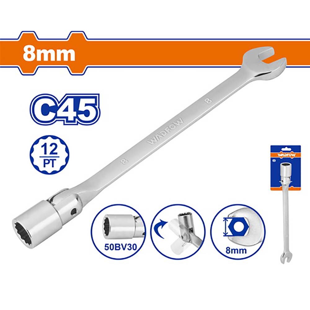 Ключ комбинированный 8мм с шарнирной торцевой головкой Wadfow WTH1E08