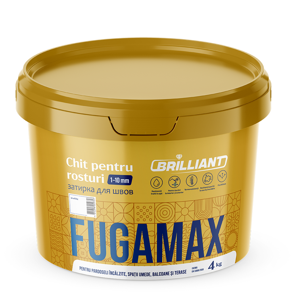 022 268 000Затирка Fugamax Brilliant 1-10мм - сухая смесь на цементной основе для затирки внутренних и наружных стеновых и напольных плиточных покрытий (керамической плитки и клинкера всех видов,керамогранита,стеклянной и другой мозаики, плитки из натураль- ного и искусственного камня) в жилых, коммерческих и общественных зданиях. Подходит для заполнения швов шириной и глубиной до 10 мм, а также для напольной плитки в помещениях с подогревом пола. Отличается высокой износостойко- стью и хорошей водоотталкивающей способностью. FUGAMAX не пригодна для затирки плиточных покрытий, от которых строго требуется кислото- или щелочестойкость (плиточные покрытия промышленных объектов, ремесленных мастерских, лабораторий и т. п.), а также не соответствует требованиям, предъявляемым к затиркам для заполнения деформационных швов, облицовки плиткой бассейнов и запол- нения швов между печами и другими элементами печей для обжига керамики.