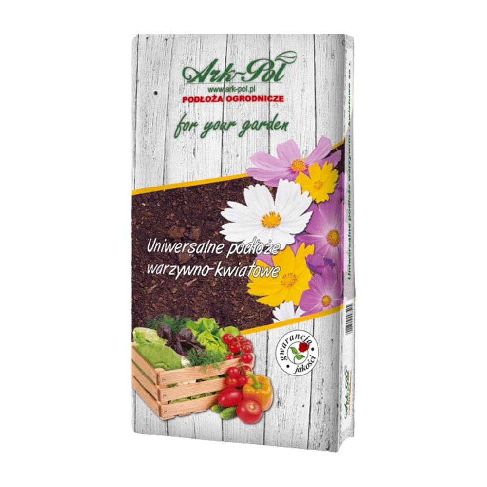 022 268 000Субстрат универсальный для овощей и цветов 50л - Универсальный овощно-цветочный субстрат представляет собой смесь верхового литовского торфа (около 50% в субстрате), низинного торфа, доломита с добавлением специализированных удобрений. В универсальной питательной среде от ARK - POL используются препараты, содержащие только натуральные ингредиенты высочайшего качества, улучшающие состояние растений.