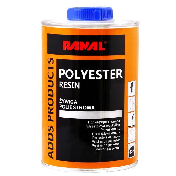 Смола полиэфирная 1кг Ranal – Ненасытная полиэфирная смола с добавлением соответствующих катализаторов предназначена для ручного ламинирования. Идеально подходит для ремонта больших przerdzewiałych мест автомобильных кузовов и ламинатов. Может быть использована при ремонте прицепов, катеров, яхт и т. д. Высохшая пленка характеризуется высокой адгезией к основанию и эластичностью, а также высокой устойчивостью к воздействию воды, бензина, смазок и масел. Хорошо переносит кратковременное воздействие высокой температуры (до 90°).