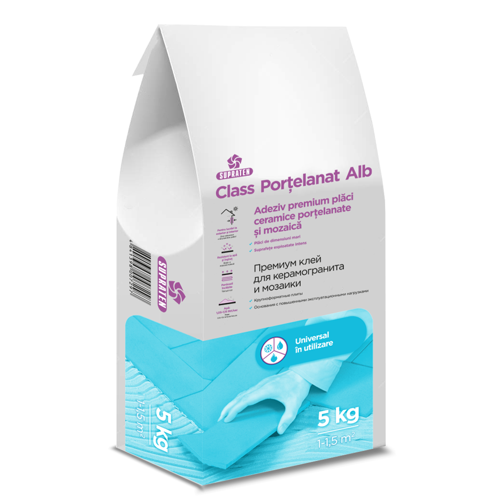 022 268 000CLASS PORȚELANAT — клей премиум класса на основе смеси специального высококачественного цемента, реологических и армирующих добавок, полимеров и калиброванной кварцевой муки.