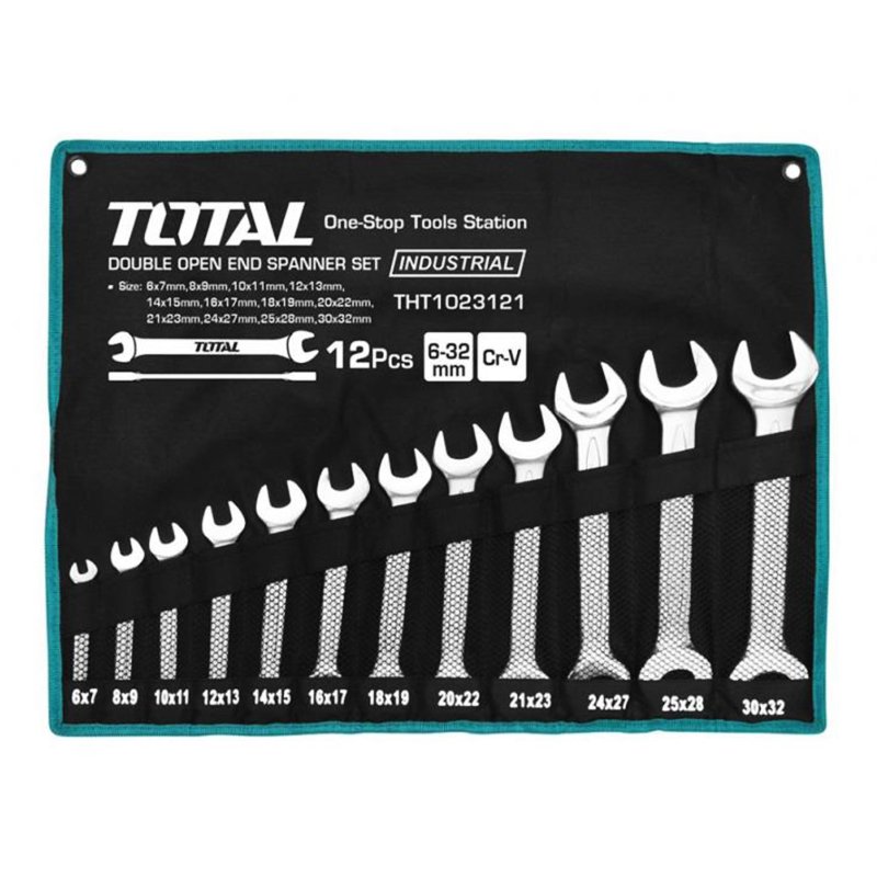 Ключи рожковые 12шт - включает в себя 12 комбинированных гаечных ключей с накидными и рожковыми головками размером 6x7мм, 8x9мм, 10x11мм, 12x13мм, 14x15мм, 16x17мм, 18x19мм, 20x22мм, 21x23мм, 24x27мм, 25x28мм, 30x32мм. Все включи изготовлены из высокопрочного хром-ванадиевого сплава и отлично отполированы. Для удобства хранения и транспортировки ключи поставляются в тканевом чехле.