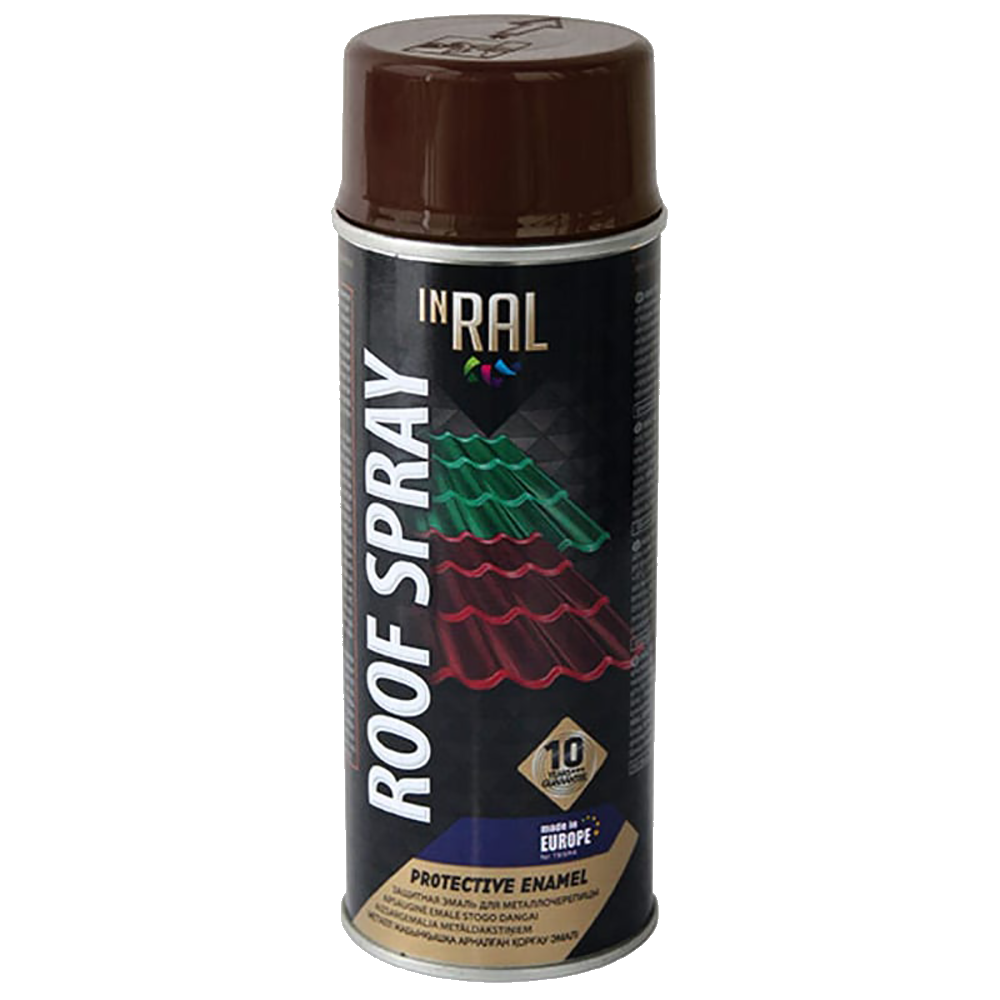 022 268 000Эмаль спрей Roof RAL 8017 коричнево-шоколадный 400мл - аэрозольная эмаль для крыши 400мл предназначена для покраски и устранения дефектов металлочерепицы и водосточных труб. Покрытие отличается стойкостью к воздействию солнечных лучей солнца и дождя, быстро высыхает, обладает отличным блеском. Состав не содержит соединений свинца и хрома, а также веществ, разрушающих озоновый слой.