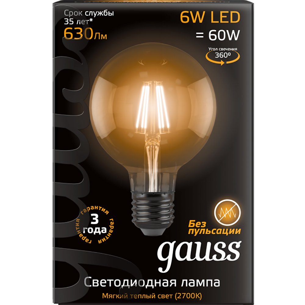 Лампа светодиодная Filament G95 с цоколем E27 6Вт