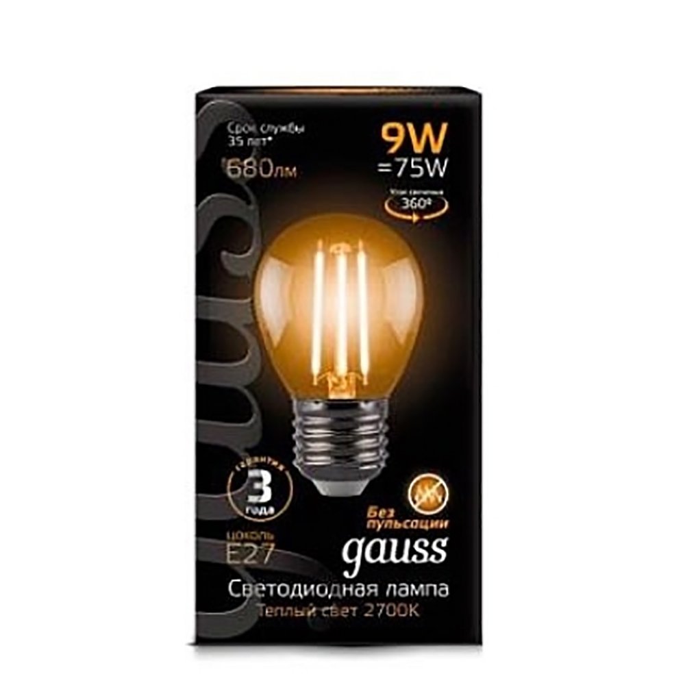 Лампа светодиодная Filament Globe G45 с цоколем E27 9Вт