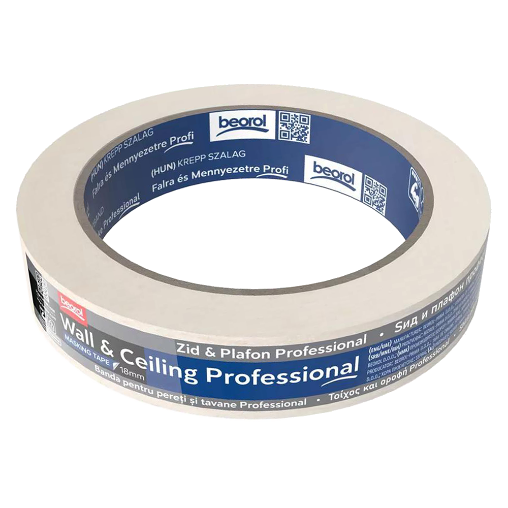 022 268 000Лента малярная прочное склеивание Wall Professional 18мм 33м - устойчивость: 80°/90 мин. Вид клея: “solvent” (натуральный каучук). Общая толщина: 135мкм (бумага + клей). Цвет: белый. Используется при фасадных, при внутренних работах, а также при покрытии лаком автомобиля