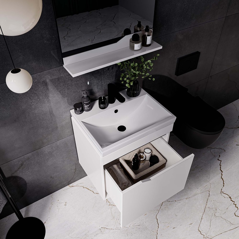022 268 000Тумба с раковиной подвесная "ELSASS 60" (TG 8056) Белый - это идеальный выбор для ванных комнат, внешний вид мебели и элегантность раковины добавляет привлекательности и функциональное решение для современных ванных комнат. При этом отличная возможность разнообразить интерьер ванных комнат создавая тёплую и комфортную атмосферу.