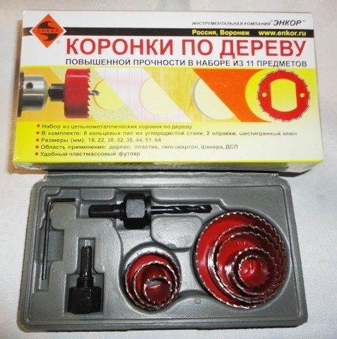 - 8 коронок диаметром - 19 мм; 22 мм; 30 мм; 32 мм; 38 мм; 44 мм; 51 мм; 64 мм;