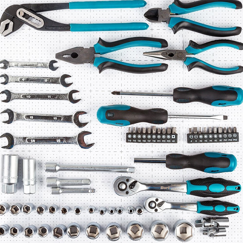 Подробное описание: Бита 25 мм 20шт (4, 6, PH1, PH2, PH3, PZ1, PZ2, PZ3, T10, T15, T20, T25, T27, T30, H2, H3, H4, H5, H6, AD) Бокорезы Головки 1/4" 12шт (4, 4.5, 5, 5.5, 6, 7, 8, 9, 10, 11, 12, 13) Головки 3/8" 11шт (10, 11, 12, 13, 14, 15, 17, 19, 21, 22, 24) Длинногубцы Клещи переставные Ключ гаечный 5шт (6-7, 8-9, 10-11, 12-13, 14-15) Ключ трещеточный 1/4" Ключ трещеточный 3/8" Муфта Отвертка 100мм 2шт (PH2, SL6) Отвертка-держатель для бит Плоскогубцы Свечной ключ квадрат 3/8 16мм Свечной ключ квадрат 3/8 21мм Удлинитель квадрат 1/4 3' Удлинитель квадрат 3/8 3' Удлинитель квадрат 3/8 6' Шарнир карданный 1/4 Шарнир карданный 3/8” Кейс