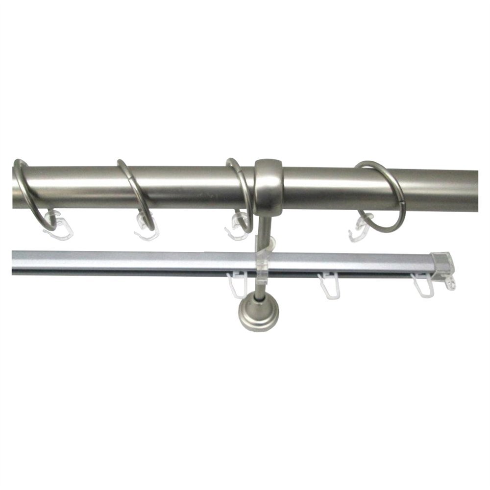 Карниз Delfa классический выполнен из стальных и пластмассовых элементов. Несомненным преимуществом данного карниза является то, что его труба сделана из метала, пожалуй один из самых подходящих материалов для того чтобы использовать карниз для штор. Комплектация карниза делает его очень удобным он не займет много места на вашем потолке. В комплект карниза входят (крючки, кольца, труба, наконечники, шина, дюбель). Крепкая труба карниза изготовлена из стали делает карниз долговечным, наконечники изготовлены из ударопрочного полистирола в цвет трубы, крючки в свою очередь изготовлены из высокопрочной пластмассы.