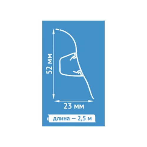022 268 000Плинтус напольный Ecoline 106 ясень серый 2500x23x52мм - имеет самый оптимальный для монтажа размер (52х23 мм) и усиленную замковую часть кабель-канала. Цвета плинтуса подобраны под самые ходовые цвета ламината и линолеума. Мягкий край плинтуса прилегает к поверхности стены, повторяя рельеф и не позволяя небольшим неровностям образовывать щели между стеной и плинтусом. Центральная часть является съемной, что удобно при укладке электропроводов.