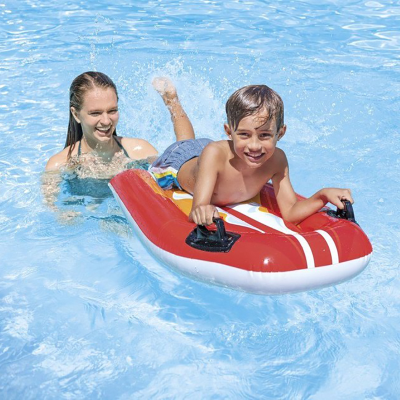 022 268 000Плот надувной Джой Райдер 112x62см 6+ - этот яркий и жизнерадостный плотик станет прекрасным другом и помощником в играх для вашего ребенка. Вы можете играть в сёрферов, охотников на акул или представить, что вы саночники, даже жарким летом. Он отлично подойдет для первых знакомств ребенка с открытыми водоемами. Две удобные ручки позволят ему крепко держаться на плоту и не испытывать дискомфорта. Получайте удовольствие от летних забав