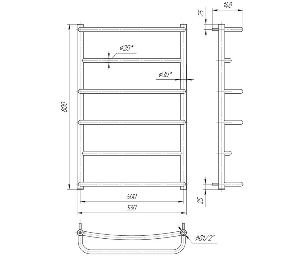 Полотенцесушитель Люкс HP 530x800мм